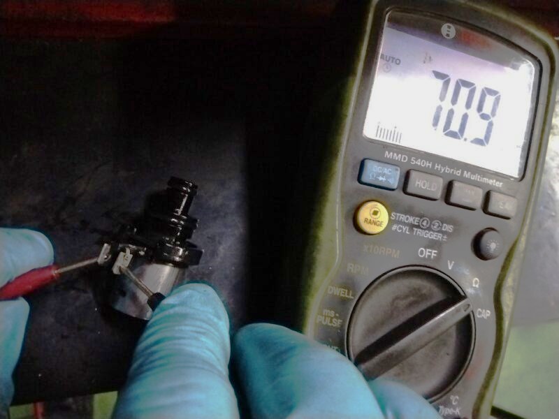 やはり基準値よりもかなり大きな抵抗値を表示しているのでソレノイド自体の不良はほぼ確実です。