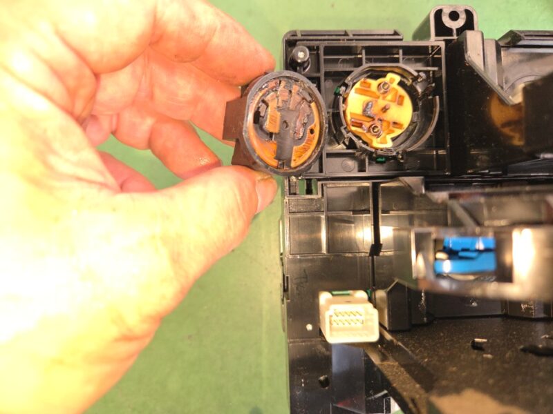 部品を取り外すとブロアスイッチ裏側が外れてしまっています。