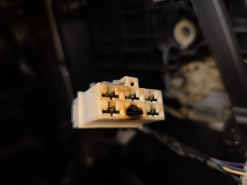 コネクターに焦げた跡がありますので接触不良により発熱したことで周辺に熱を帯びて溶けて外れたのかもしれません。