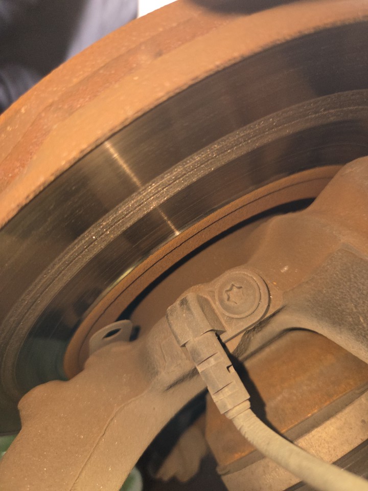 明らかにブレーキに異常がありますので点検したところブレーキディスクに擦れた跡があるのを確認できました。