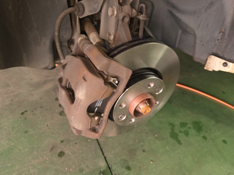パッドの残量がゼロですので交換するのは当然ですがディスクローターも欧州車特有の摩耗をする設計のためかなりすり減っていますので同時に交換を行います。