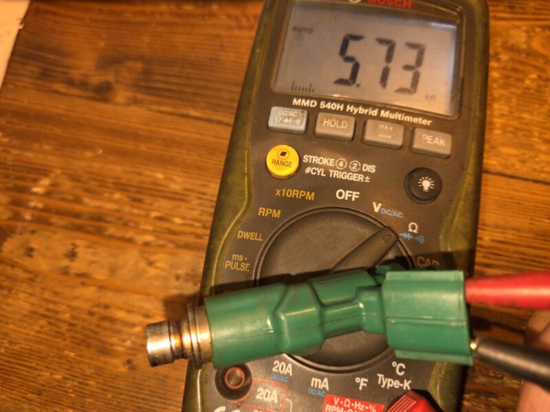 届いたインジェクターは見た目は同じですが、一応抵抗値を測定してから取り付けることにします。