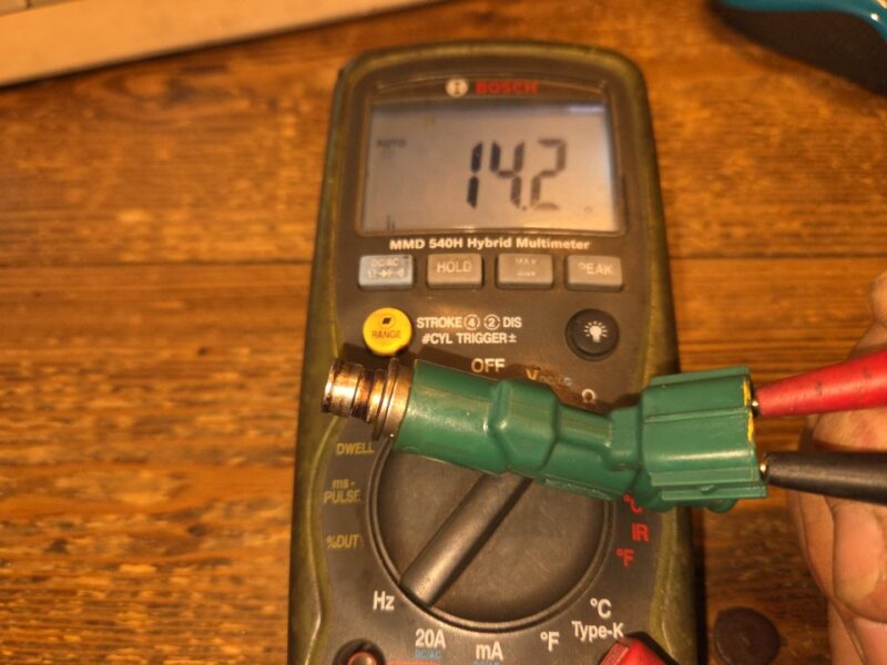14.2オームで純正のインジェクターに比べ2オーム近く抵抗値が大きいです。