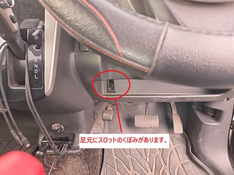 しかしプッシュスタートボタンにキーを押し当てても認識できません、困り果ててお付き合いのある鍵屋さんに相談してみると、”もしかしたら足元のほうにキーを入れるスロットのようなへこみがないか確認してくれ”と言われ見てみると確かにへこみがありそこにキーを差し込むとあっけなくエンジンが掛かりました。