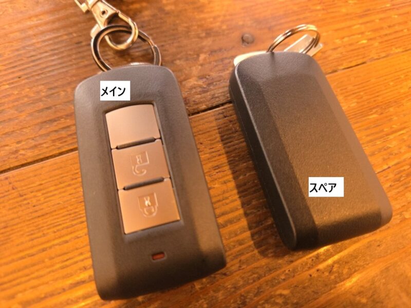 スペアキーも電池がそもそも使われないイモビチップと金属キー(リモコン機能なし)のみのタイプだったのも混乱の原因でした。