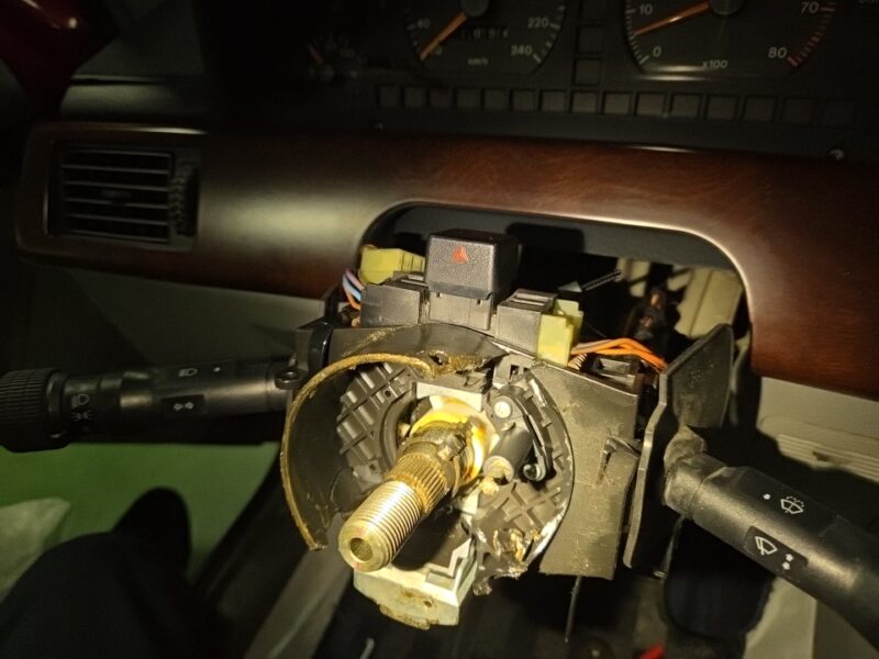 コラムカバーを外してみるとディマースイッチ自体が壊れているのではなくスイッチが嵌る部分が割れてしまっています。